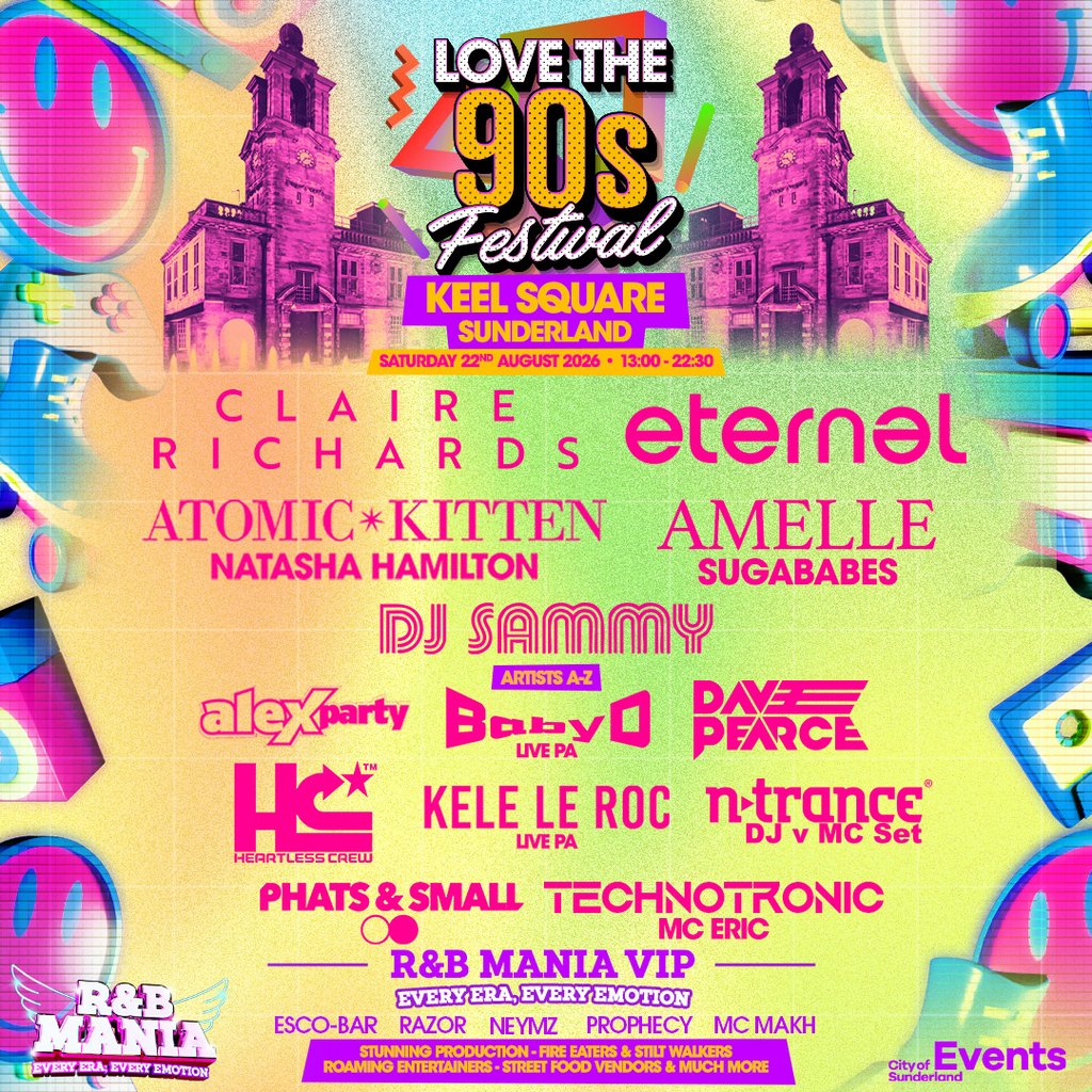After multiple sell-out shows across the UK, Love The 90s Festival is taking over Keel Square, Sunderland, for a day of pure 90s nostalgia!